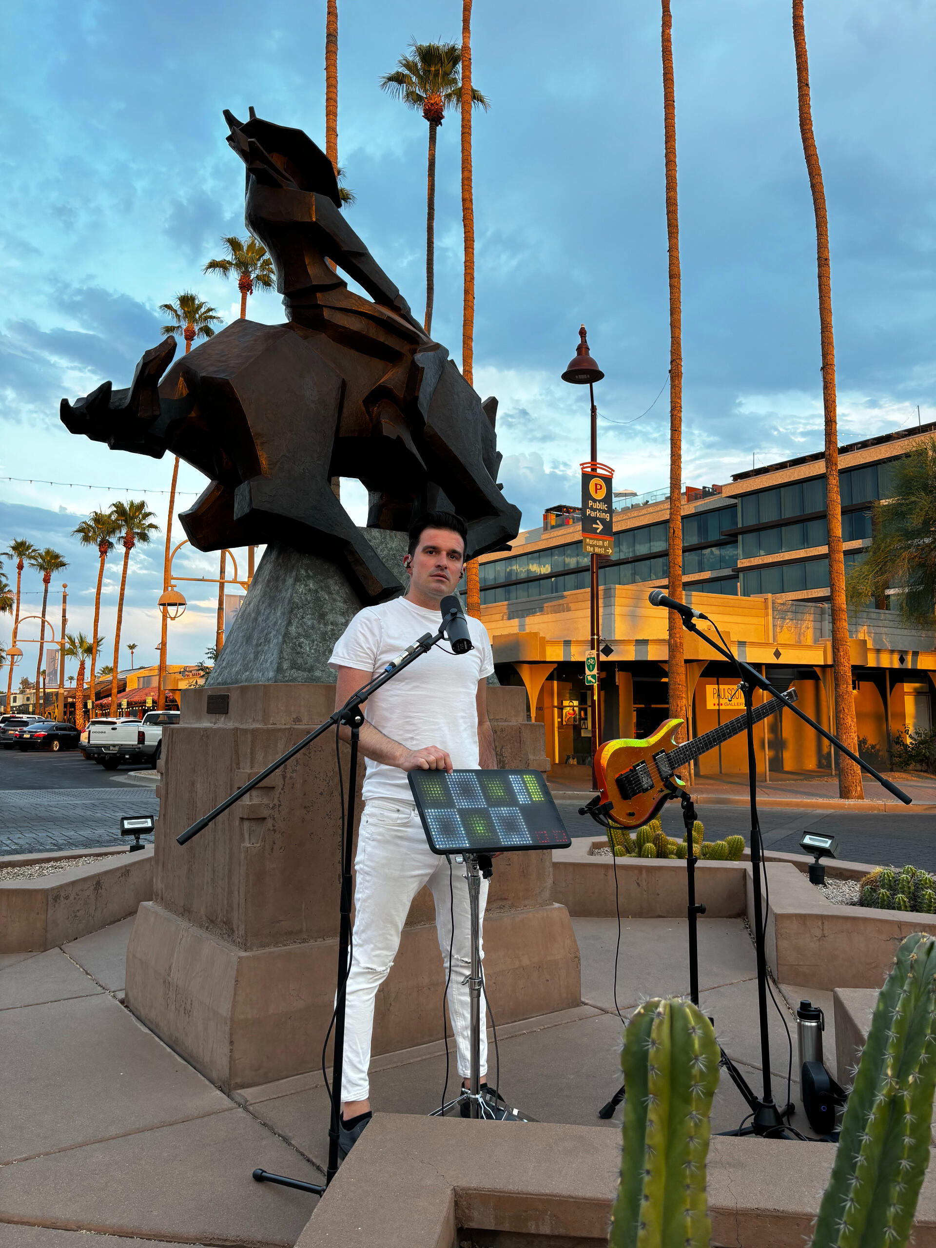 SCOTTSDALE AND THE ART.The theme of horses continues throughout many of Scottsdale's public art installations. One of the most famous sculptures was created by Ed Mell, one of Arizona’s premier artists. Jack Knife, pictured above, is a bronze statue standing over eight feet high on its base and is modeled after Scottsdale’s official city seal, a rider astride a bucking horse. It is not a traditional sculpture, but yet it has a very traditional theme.Another one of the old town's most prominent pieces of art is the bronze horse fountain. Artist and gallery owner Bob Parks donated this fountain in 1989 with the intent to attract more visitors to Scottsdale's fifth avenue. The landmark features five Arabian horses rearing from the fountain.Many more pieces of public art can be found in close proximity to Scottsdale's civic center and the Scottsdale Museum of Contemporary Art. Scottsdale is certainly a place where art and culture are celebrated and embraced, especially with all its cultural events, like the popular Scottsdale artwalk happening every Thursday.