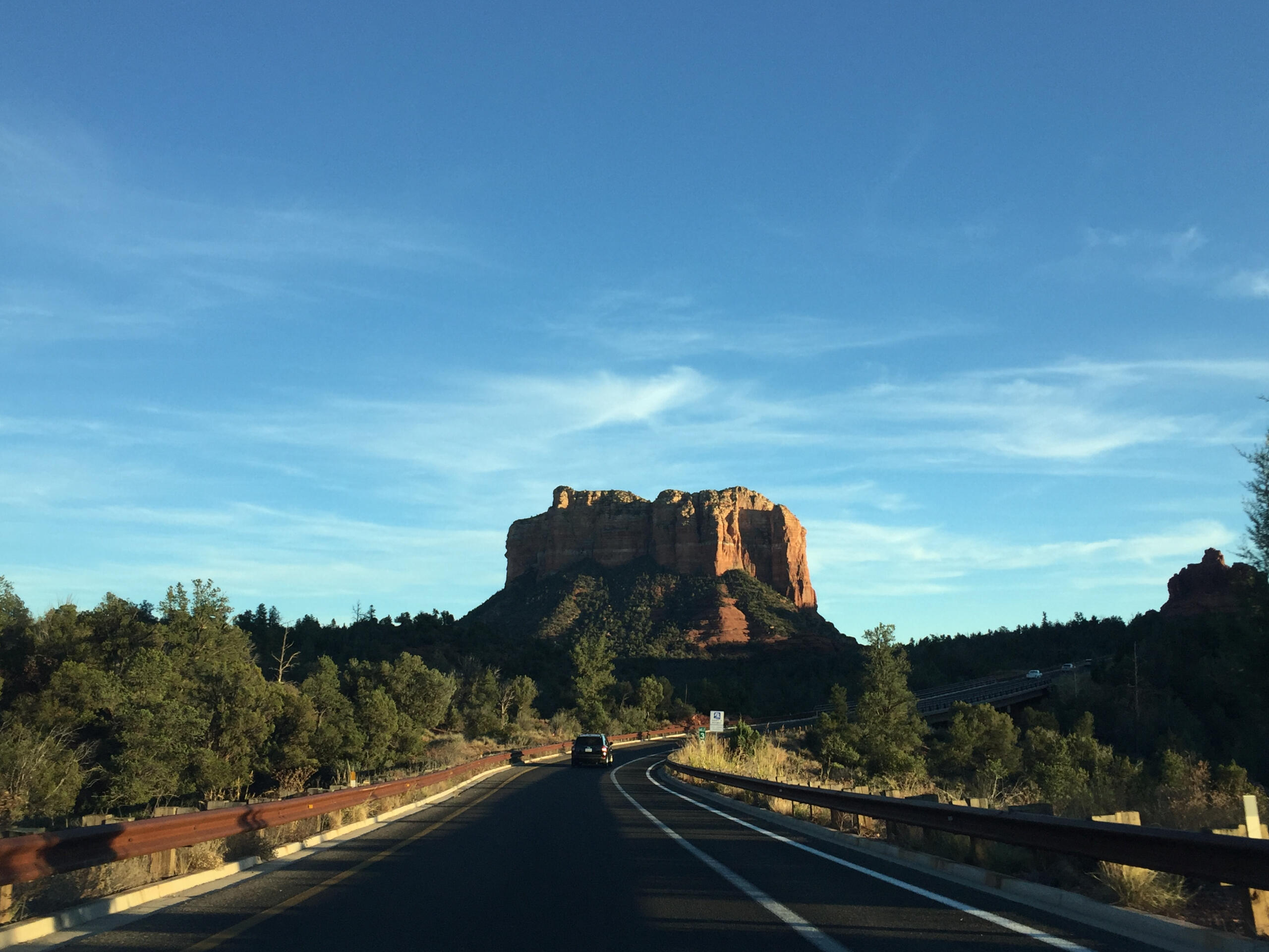 Driving up from Phoenix to Sedona is a journey through diverse and breathtaking landscapes. As you leave Phoenix, the Sonoran Desert dominates the scenery with its Saguaro cacti, rocky outcrops, and arid terrain under a wide, open sky. As you head north, the landscape gradually transforms, with the desert giving way to the rolling hills and lush greenery of the high desert. The air becomes cooler and crisper as you ascend into higher elevations, and the horizon starts to fill with pine forests.As you approach Sedona, the road begins to follow the winding path of Oak Creek, where towering cliffs and dense forests create a beautiful contrast to the desert landscape left behind. The first glimpse of Sedona's famous red rocks is both awe-inspiring and surreal, as the vibrant hues of the rock formations emerge against the backdrop of the (typically deep blue) sky. As you continue on into Sedona, the landscape opens up to reveal the full splendor of these majestic formations, where nature’s beauty and spiritual energy converge.