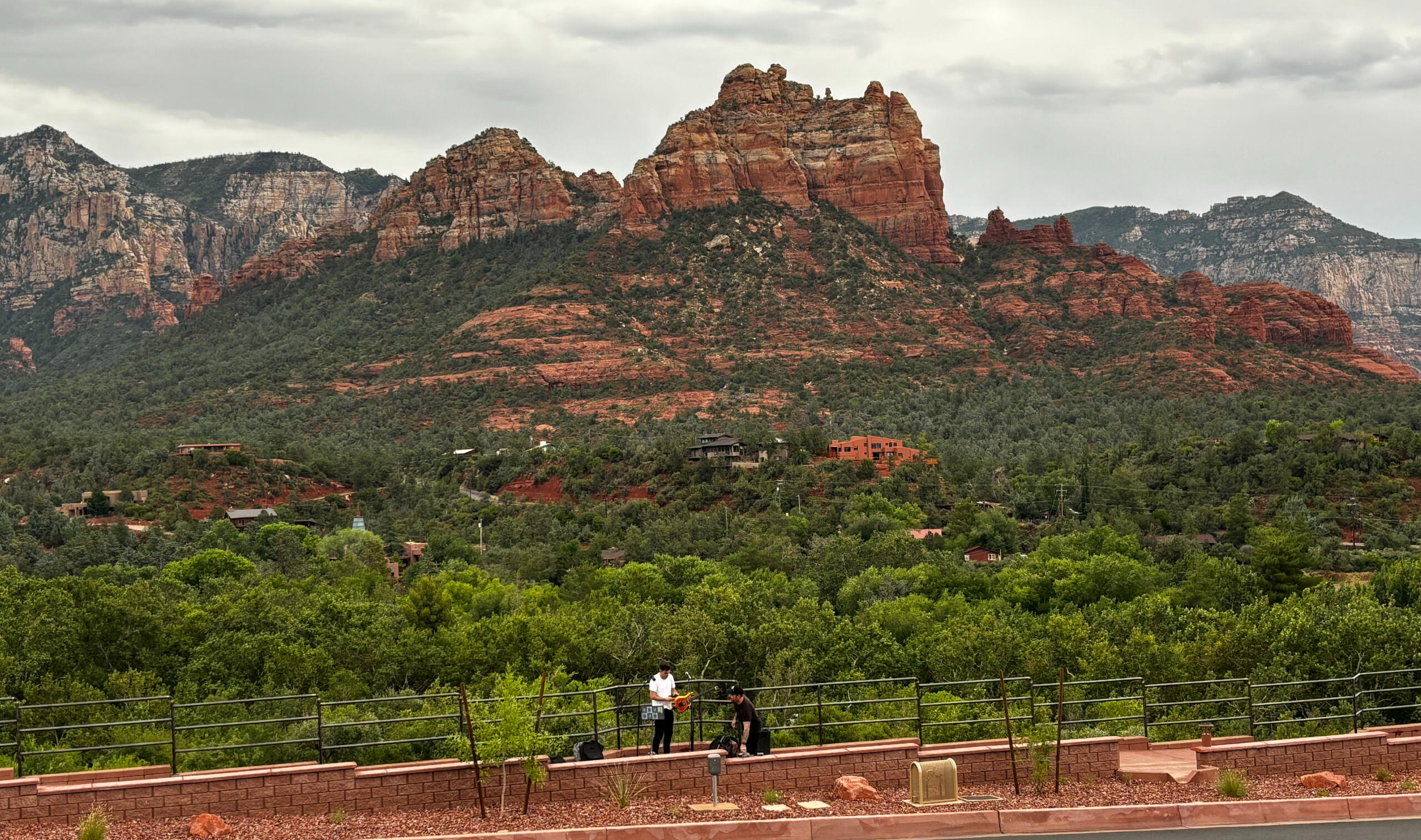 AN OASIS IN THE DESERT.Sedona has a deep connection with the Coconino National Forest, which surrounds the city and significantly shapes its landscape and outdoor experiences. This forest is one of the most diverse in the United States, covering a vast range of ecosystems, from high desert red rock formations around Sedona to alpine forests at higher elevations near Flagstaff.Oak Creek winds through the forest right into the heart of Sedona. The creek provides a cool, green oasis in the arid environment, supporting a rich diversity of plant and animal life. As you drive into Sedona from the South, you come across "Oak Creek Scenic Overlook". It's where the green of the forest mixes with the red rocks of Snoopy Rock and Munds Mountain Wilderness Area. A stunning backdrop that captures the essence of Sedona perfectly - what better place for a performance than this...