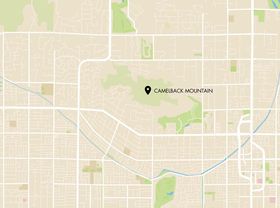 Camelback also represents a piece of classic mid-century Americana. During the golden age of desert tourism, visionaries and thought leaders flocked to its base. Iconic spots like Camelback Inn and the historic El Chorro Lodge became gathering places for relaxation, reflection, and creativity.Camelback Mountain rises majestically at the heart of the Valley of the Sun, embodying the rugged beauty and vibrant spirit of Arizona. Its iconic silhouette, carved from ancient sandstone and granite, offers a striking contrast to the sprawling urban landscape below. From the summit, visitors are treated to panoramic views of the Valley. At sunrise, the mountain glows with hues of amber and gold, while sunsets paint the valley in deep purples and fiery reds, creating a spectacle that captivates locals and visitors alike.