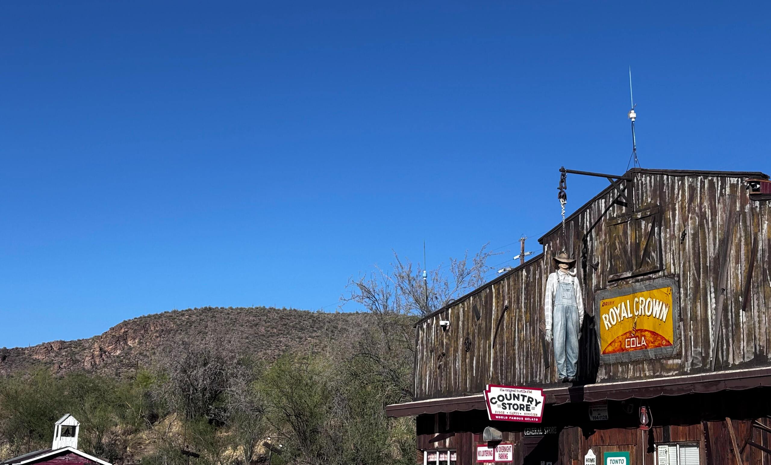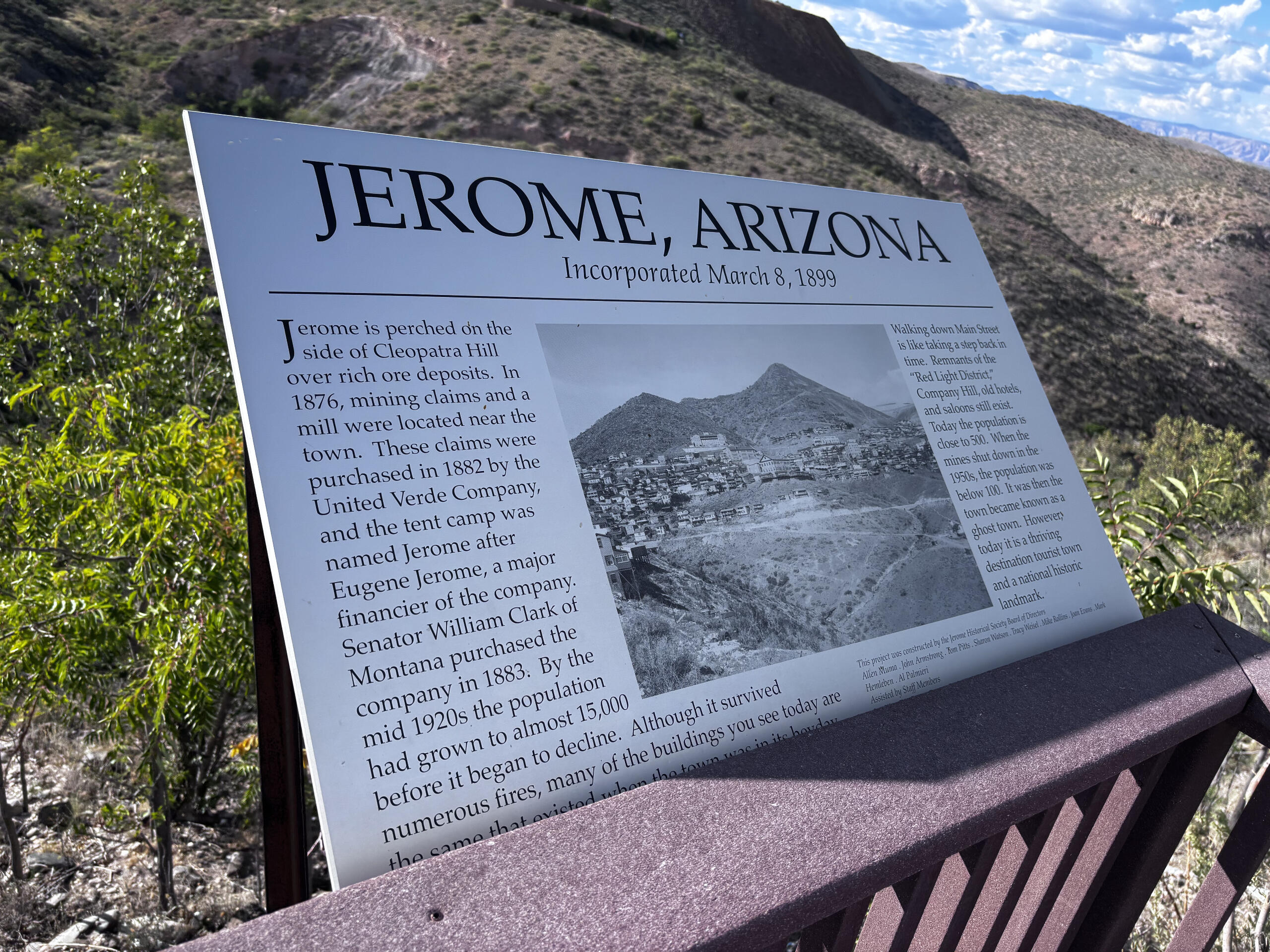 Jerome sits high on the steep slopes of Cleopatra Hill, overlooking the wide expanse of the Verde Valley below. Perhaps the hills were a little too steep at times. Today, the old jail building in can be found more than 200 feet from where it started, following a slow slide down the mountain.And the jail is not the only building in town that isn’t quite where its builder left it. A little lawless itself, the jail is now surrounded by an iron fence and new walls, just in case it decides to make another break for it. In Jerome, rusted headframes and tailings piles still mark the landscape, reminders of when the earth itself was the livelihood here.From nearly every corner of town, there’s a view - miles of desert, winding riverbeds, and the red rock country stretching toward Sedona. The hills that now draw sightseers were once carved open by miners chasing copper, gold, and silver, their tunnels cutting deep into the mountain beneath the town. Today, the juniper and mesquite are creeping back over the old mine roads, and the wind that once carried the clang of pickaxes now moves quietly through the ruins.